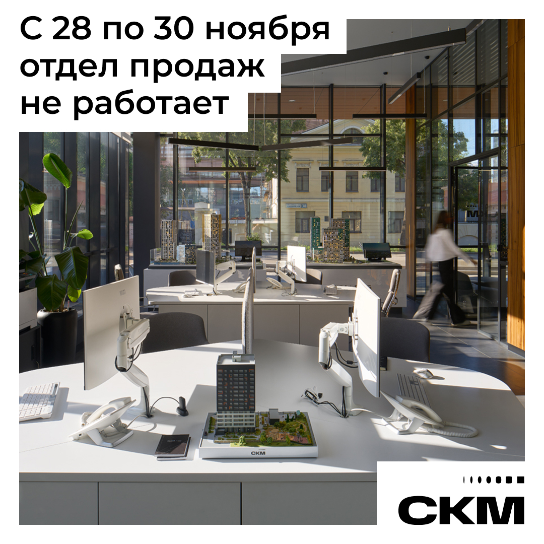 Друзья, обратите внимание, что 28 и 29 ноября отдел продаж СКМ Девелопмент не будет работать по техническим причинам.