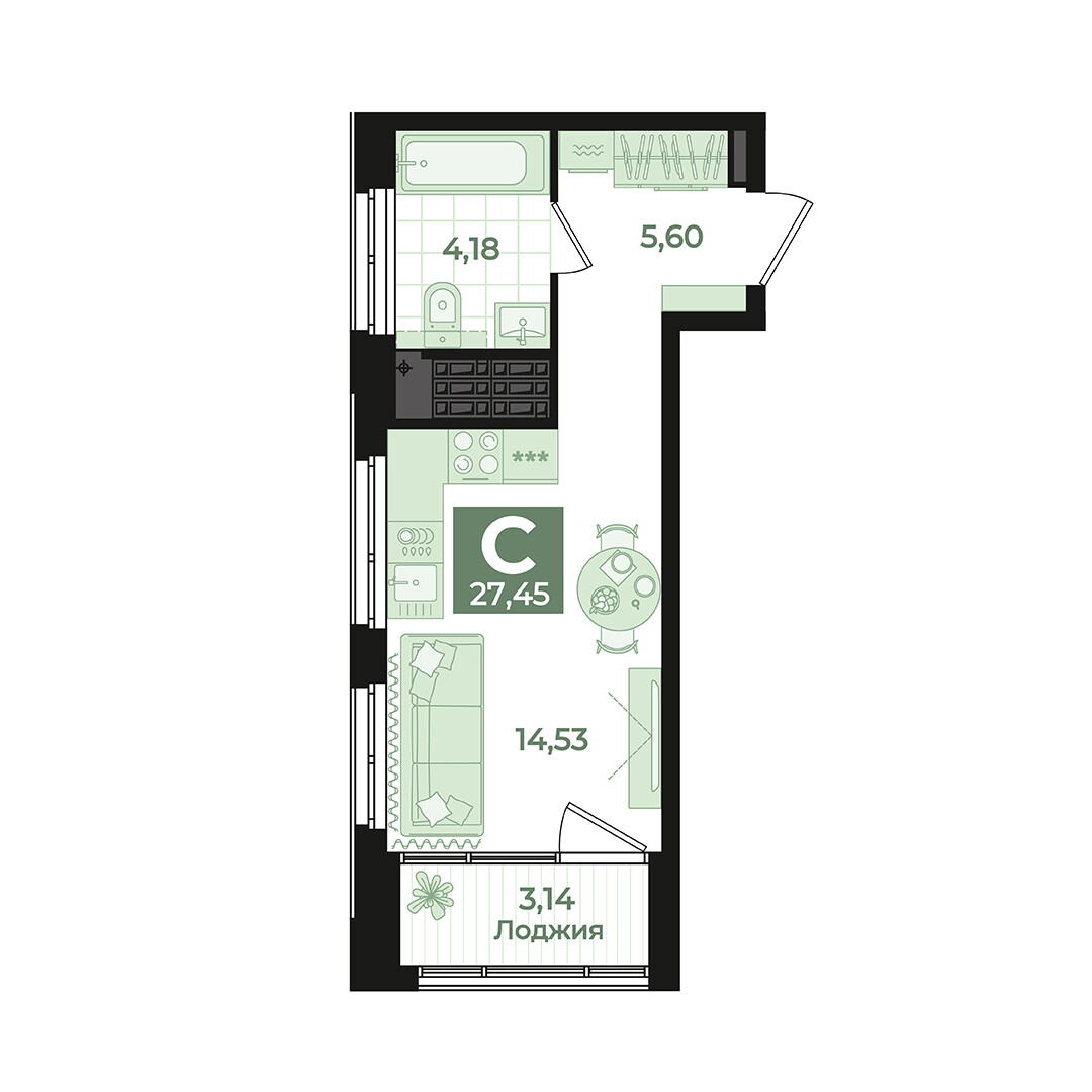 Лоджия увеличивает функциональную площадь квартиры. Вид, размер, форма могут отличаться от изображения. Конструктивные особенности уточните у вашего менеджера.