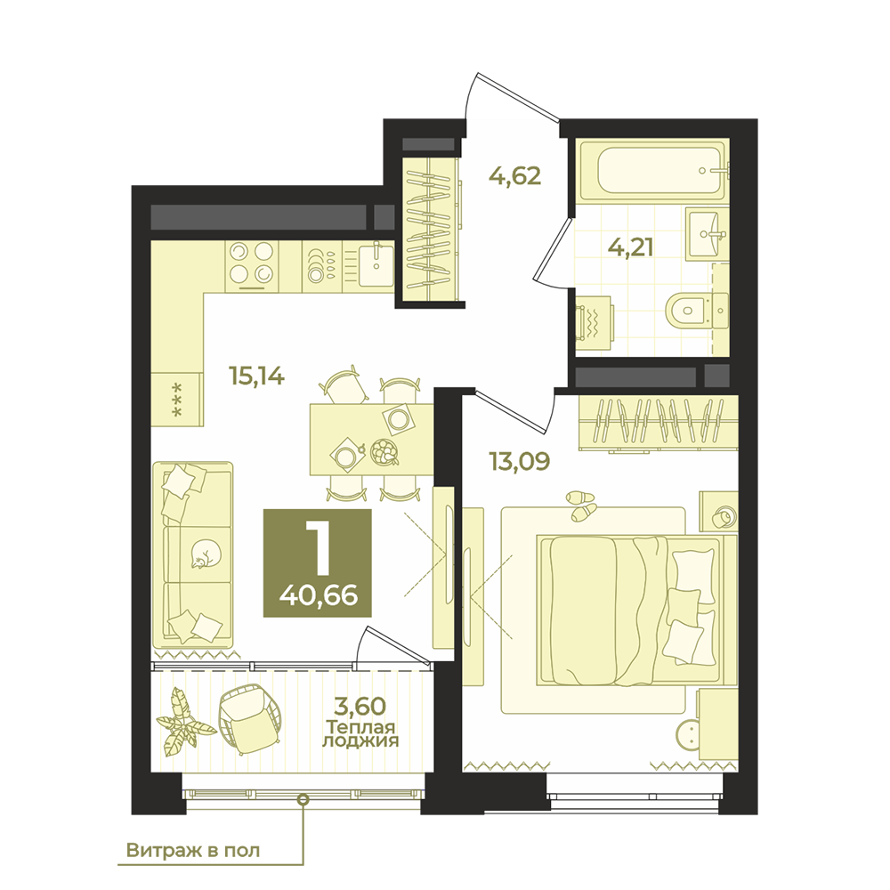 Теплая лоджия увеличивает функциональную площадь квартиры. Ее можно использовать, организовав рабочий кабинет, спортивный уголок или зону отдыха. Размер, вид, форма могут отличаться от изображения.