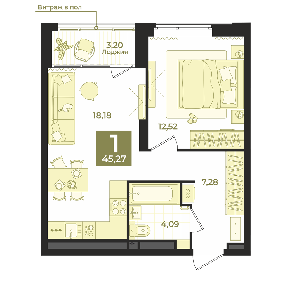 Лоджия увеличивает функциональную площадь квартиры. Вид, размер, форма могут отличаться от изображения. Конструктивные особенности уточните у вашего менеджера.