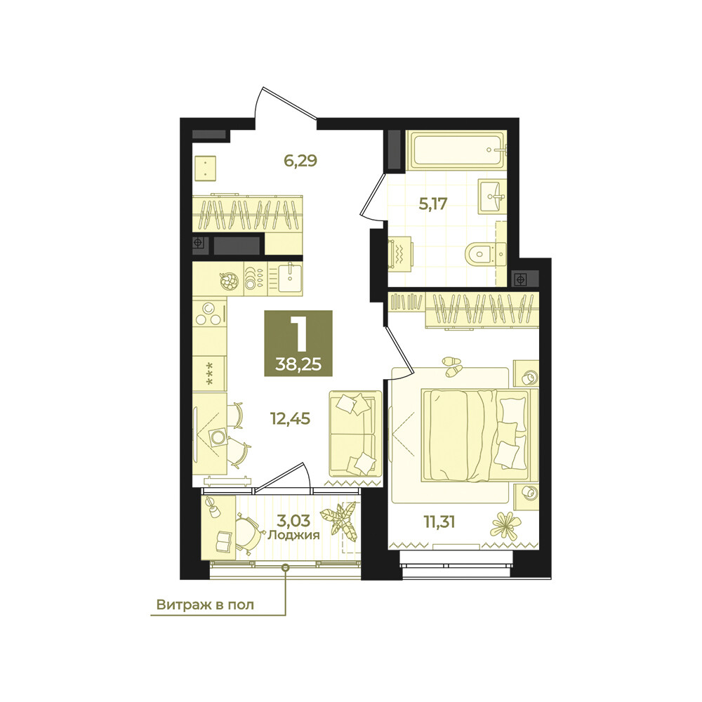 Лоджия увеличивает функциональную площадь квартиры. Вид, размер, форма могут отличаться от изображения. Конструктивные особенности уточните у вашего менеджера.