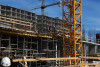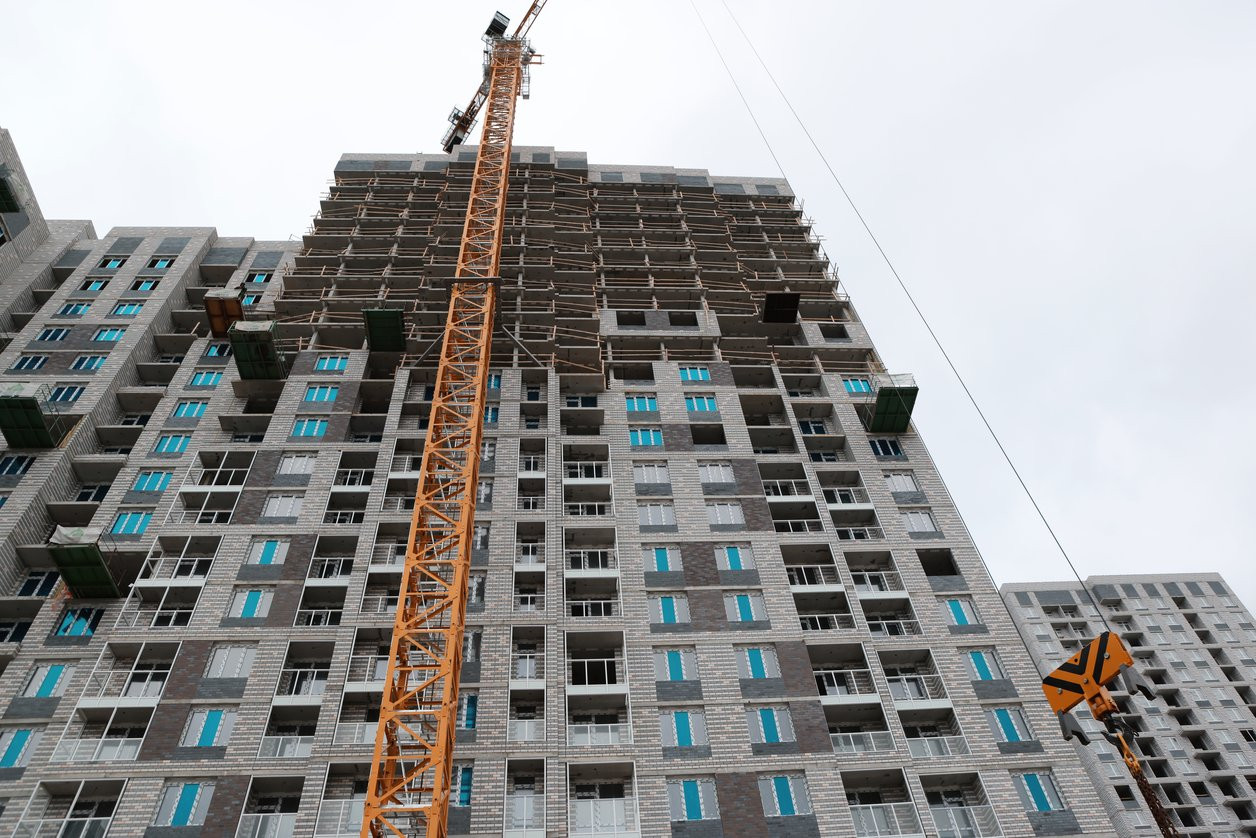 Смонтированы стартовые секции и подняты стрелы башенных кранов.
