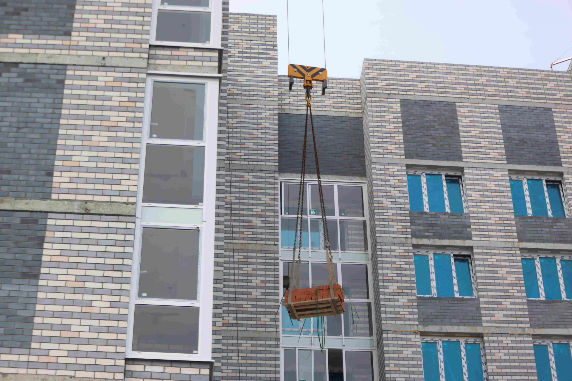 - Кладка лицевого кирпича со сторон секции 1.3 с 12 по 15 этажи выполнена 100%