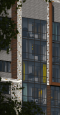 Архитектурные решения в СКМ Ривер. Кирпичная кладка в светлых оттенках и линии панорамного остекления придают жилому комплексу легкость. В отделке используются долговечные и эстетичные материалы: кирпич, керамогранит, стекло и металл.