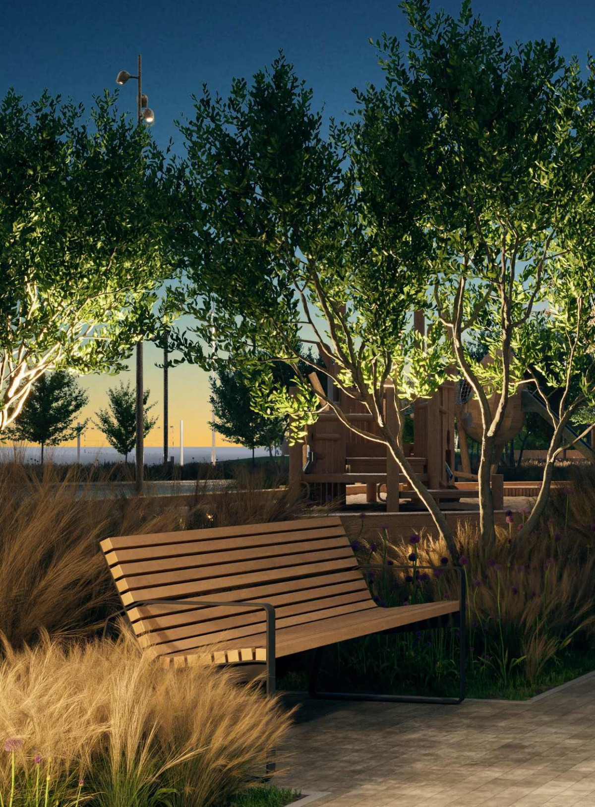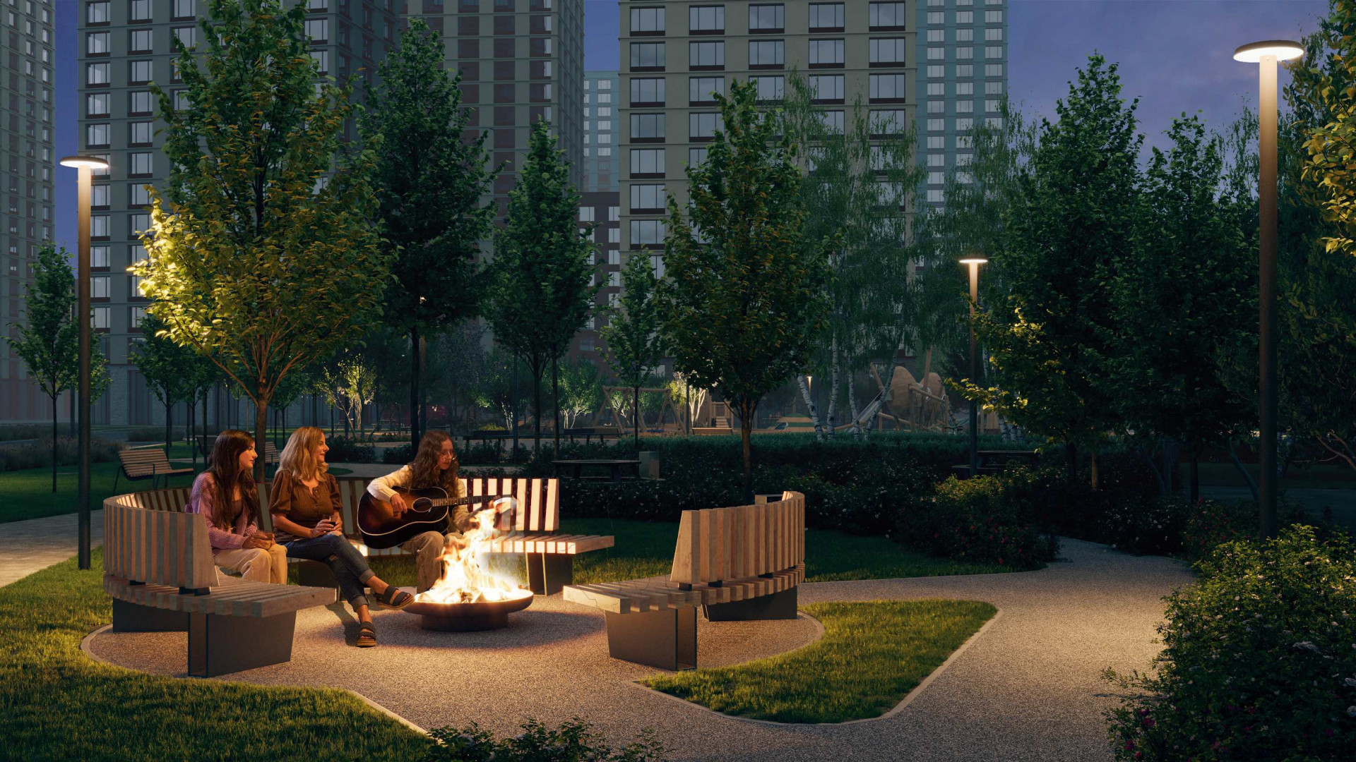Двор жилого комплекса СКМ Ривер — это закрытое пространство без машин и посторонних взглядов, с площадками для детей всех возрастов. Здесь каждый житель найдет занятие по душе: от спокойного отдыха до занятия спортом.