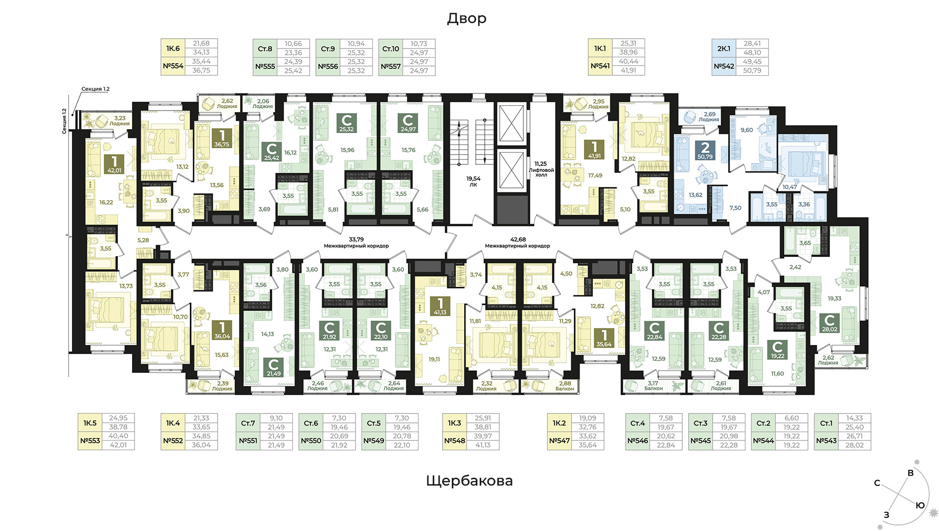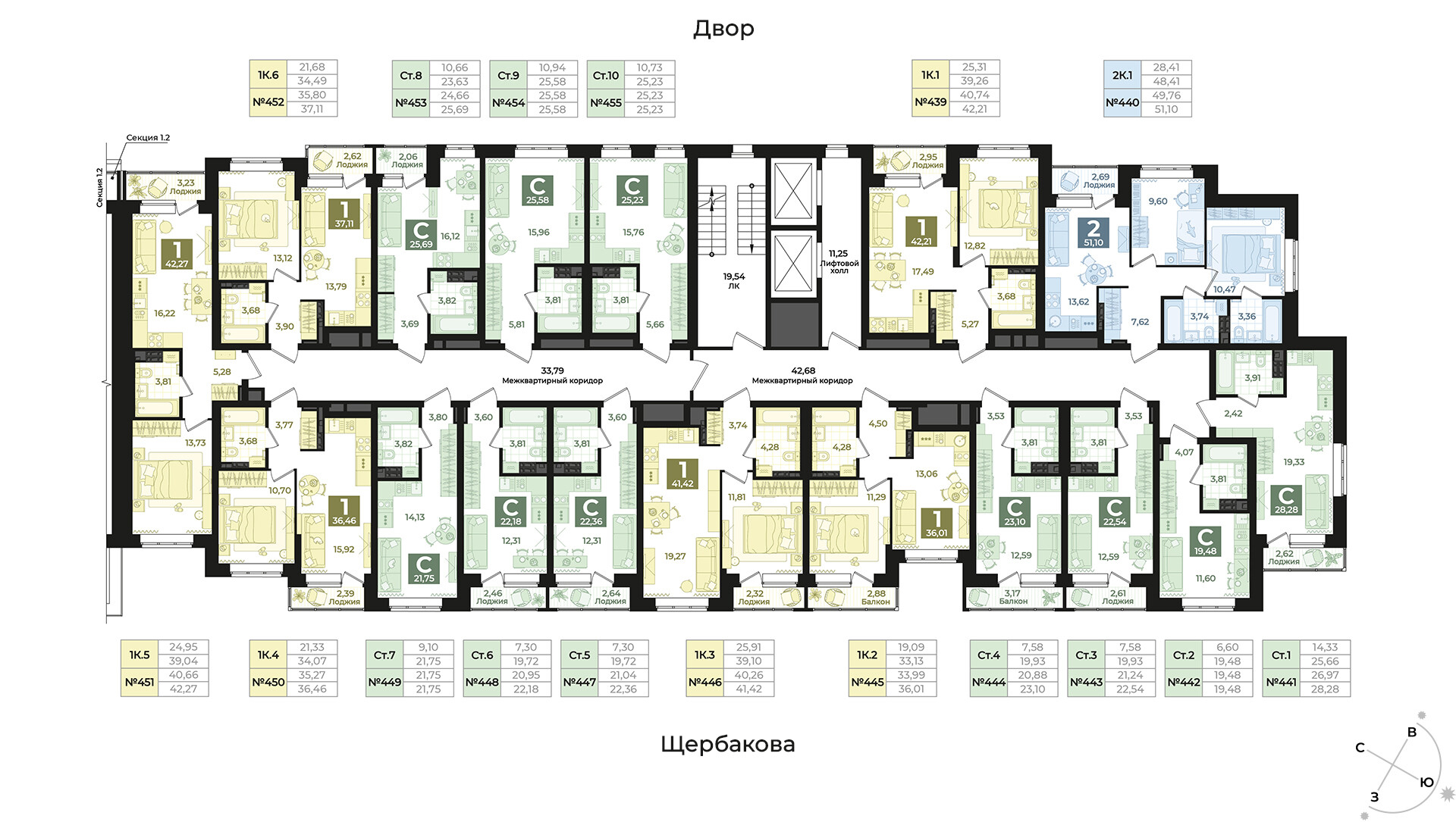 В 1 очереди более 30 планировок от студий до пентхаусов.