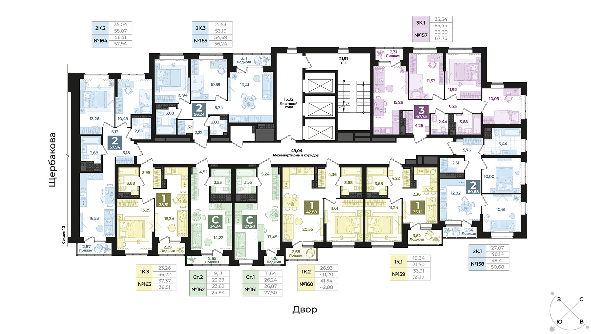 1-комнатная квартира № 159, Секция 1
