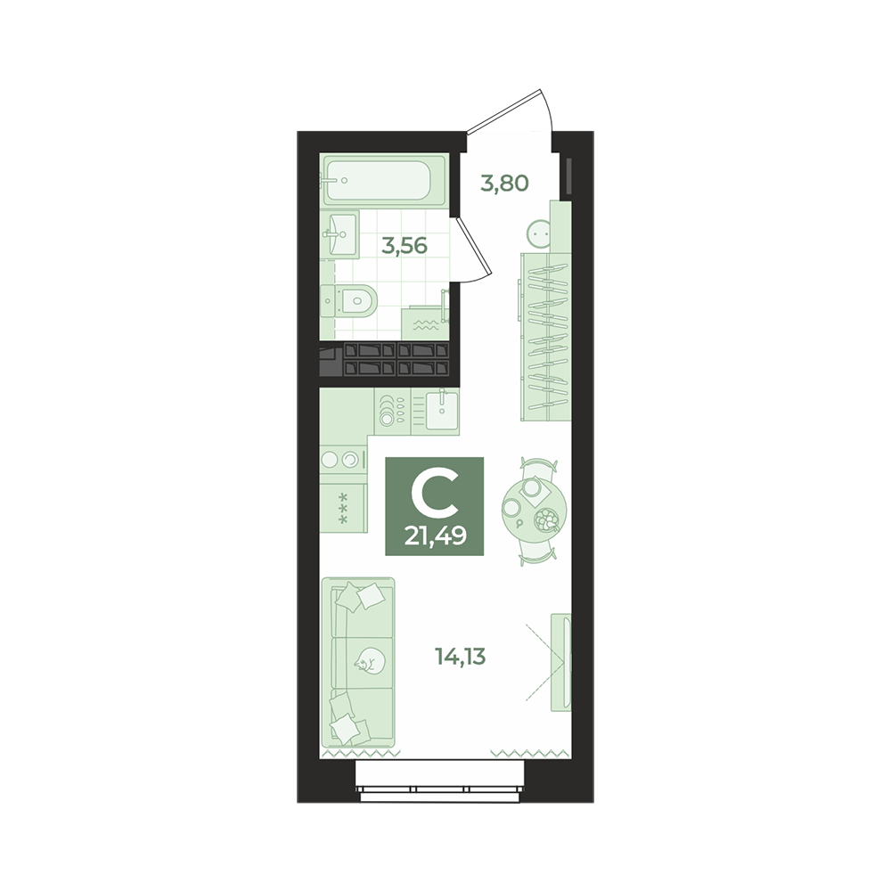 21,49 м²