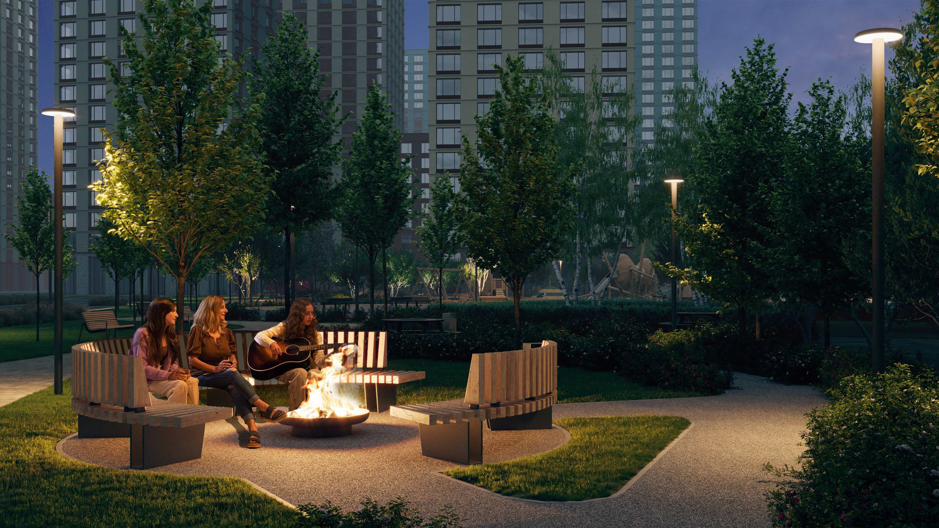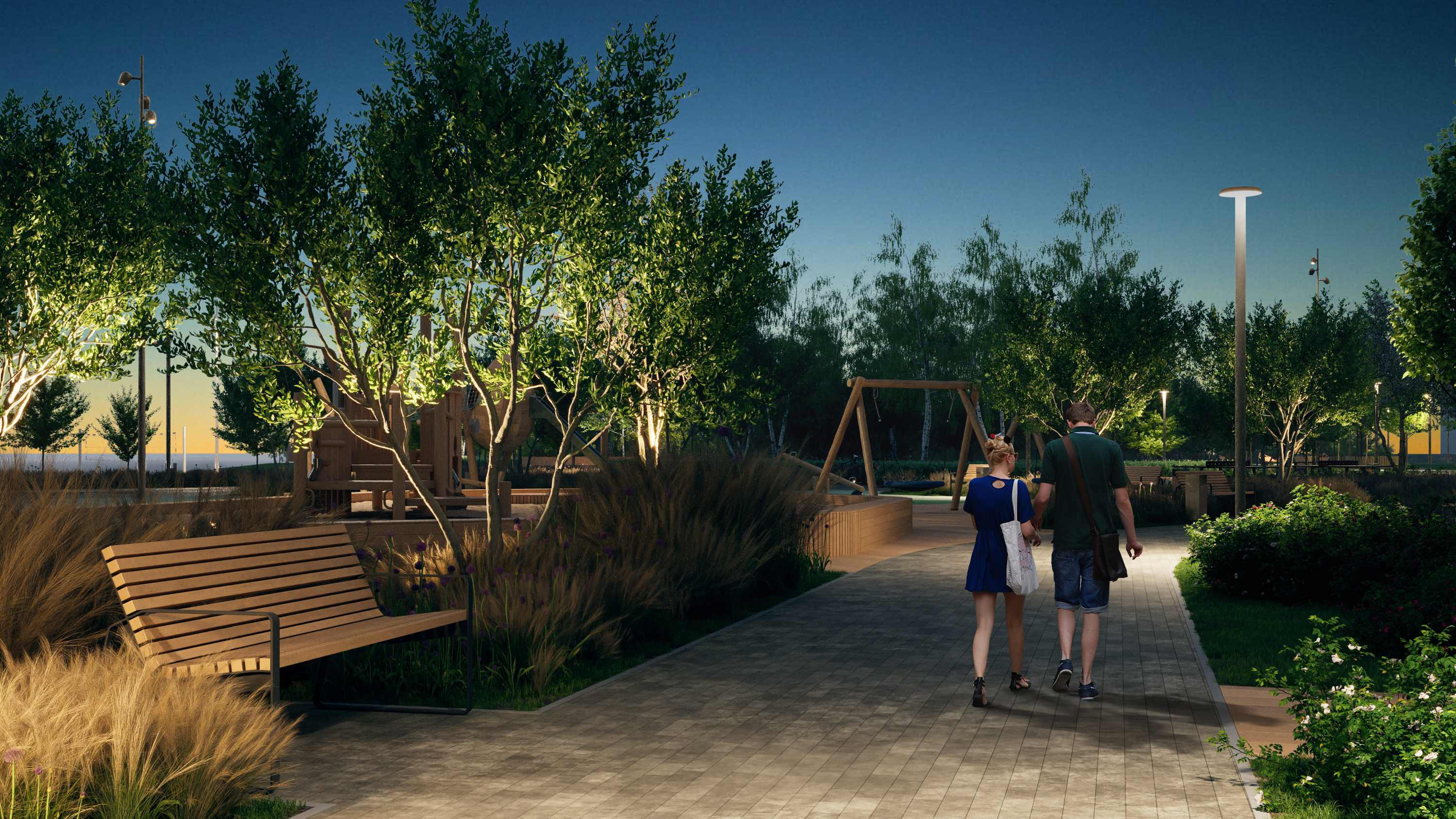 Комплекс состоит из двух домов переменной этажности, объединенные общим двором-парком с многоуровневым озеленением. На первом этаже располагается галерея магазинов, где жители смогут найти все необходимое. Приватная территория, двор без машин и система видеонаблюдения делают дом безопасным и комфортным. Пространство двора разделено на зоны: для малышей, для подвижных игр детей постарше, воркаут-площадки для занятий спортом, а также прогулочные дорожки и уютные уголки для спокойного отдыха.