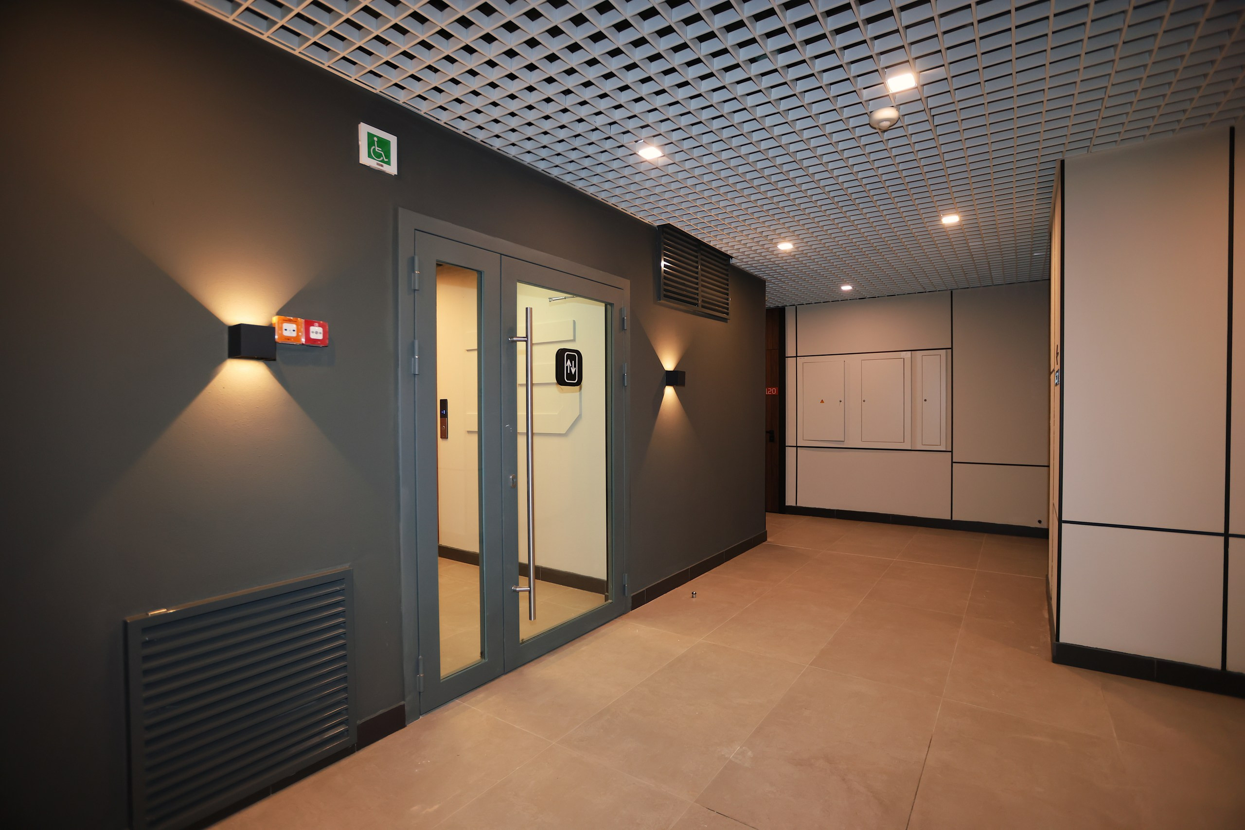 Спокойствие жителей обеспечит приватная территория, видеонаблюдение и консьерж-сервис. В парадном холле запроектирована лаундж зона с детским уголком, стойка ресепшен, гостевые санузлы. Кроме того, предусмотрен технический холл и комната для ухода за детским транспортом и мытья лап животных.