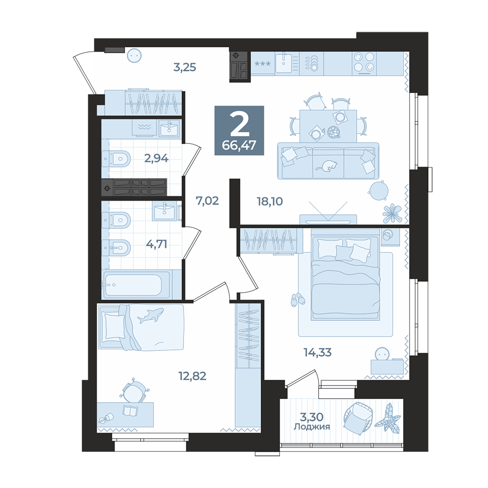 Лоджия увеличивает функциональную площадь квартиры. Вид, размер, форма могут отличаться от изображения. Конструктивные особенности уточните у вашего менеджера.