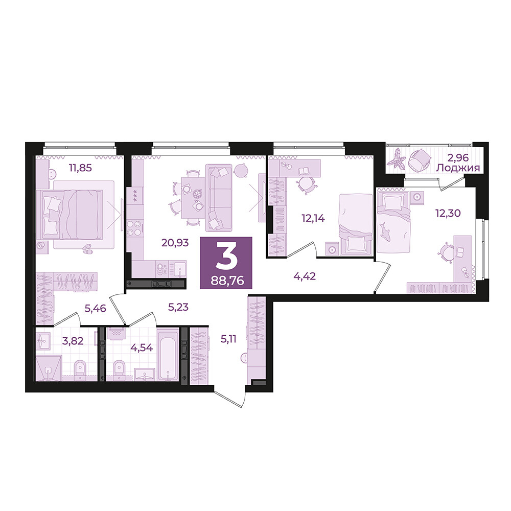 3-комнатная №281