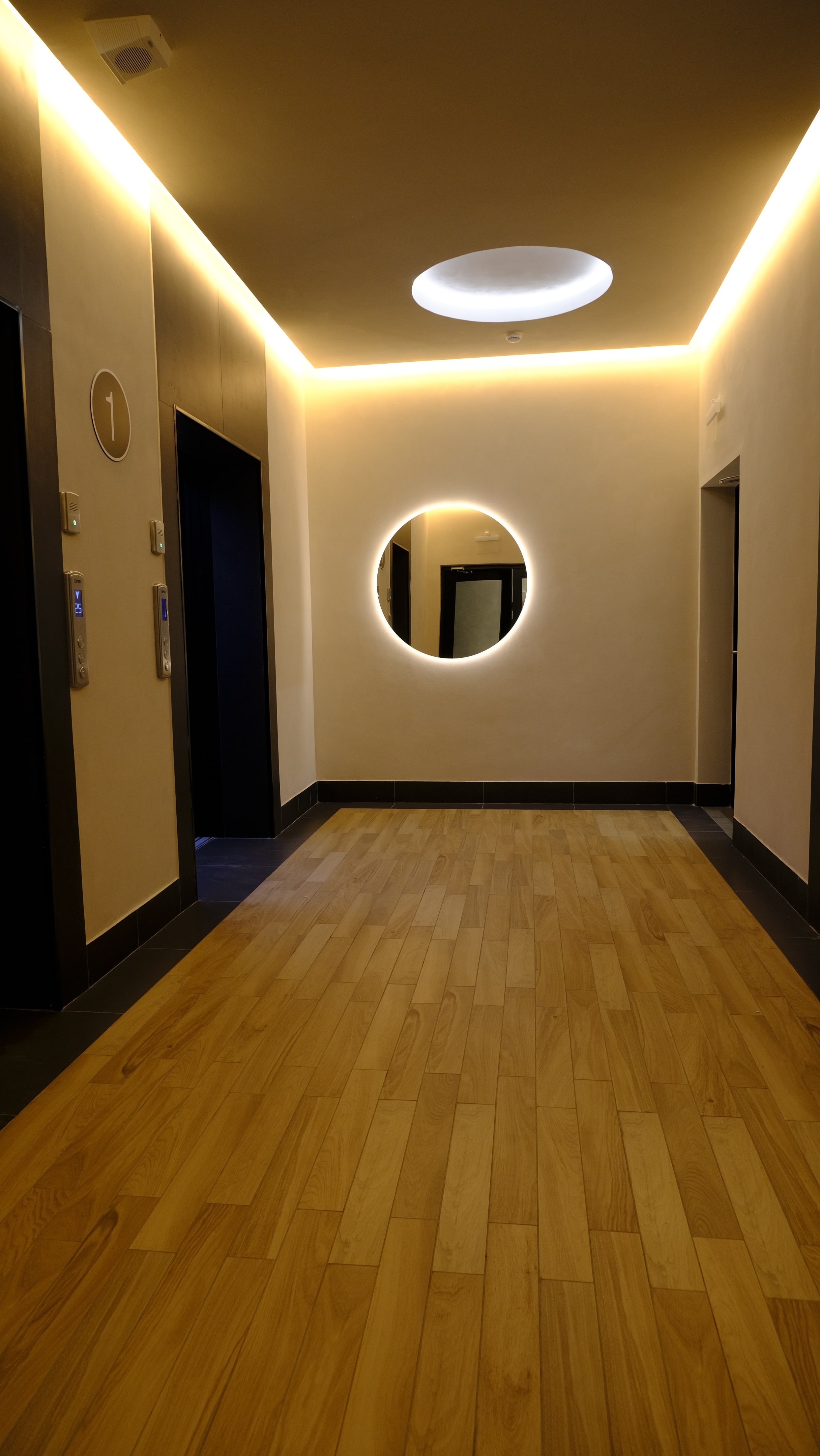 В каждом доме предусмотрены стильные общественные пространства, в которых всегда приятно находиться. Отделка выполнена по индивидуальному дизайн проекту с использованием износостойких материалов премиум класса. Элегантные лифтовые холлы, бесшумные пассажирские и грузовые лифты дополняют комфортную атмосферу в каждом доме, а чистоту обеспечивают 3 степени грязезащиты.