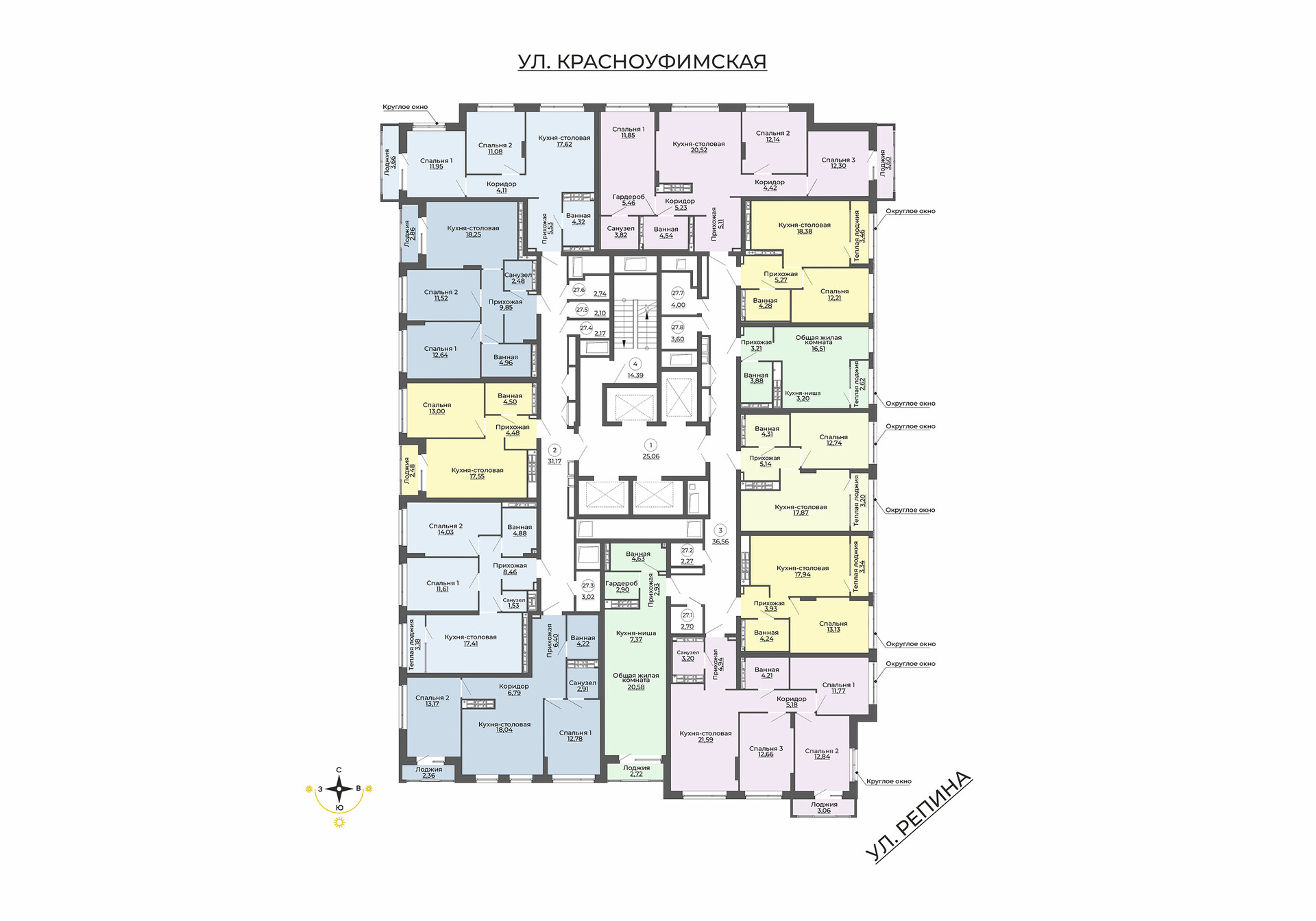 ЖК Repin Towers – три башни разной этажности объединённые общим двором. Комплекс расположен на пересечение улиц Репина – Заводская. На территории запроектирован детский сад, до школы около 100 метров, пересекать проезжую часть не придется.
